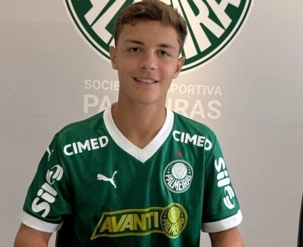O Palmeiras oficializou nesta sexta-feira (27) o primeiro contrato profissional do meia Guilherme Kerchner, de 16 anos. O vínculo é válido até janeiro de 2029.